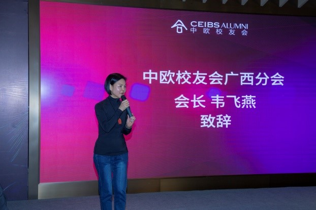 在頒獎前,中歐校友會廣西分會會長韋飛燕女士