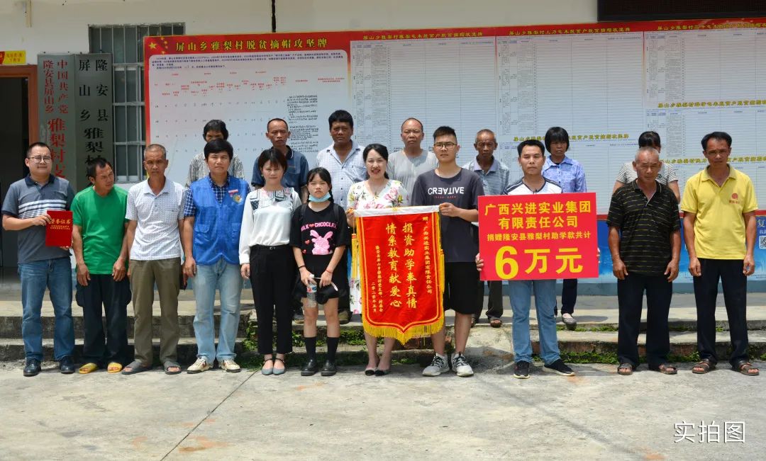 這一次,興進集團加入南寧企業結對幫扶深度貧困村的隊伍,來到山清水秀的屏山鄉雅梨村開展捐資助學活動,希望雅梨村優異學子能奮發有為,將來成為建設家鄉、建設祖國的棟梁之才。”