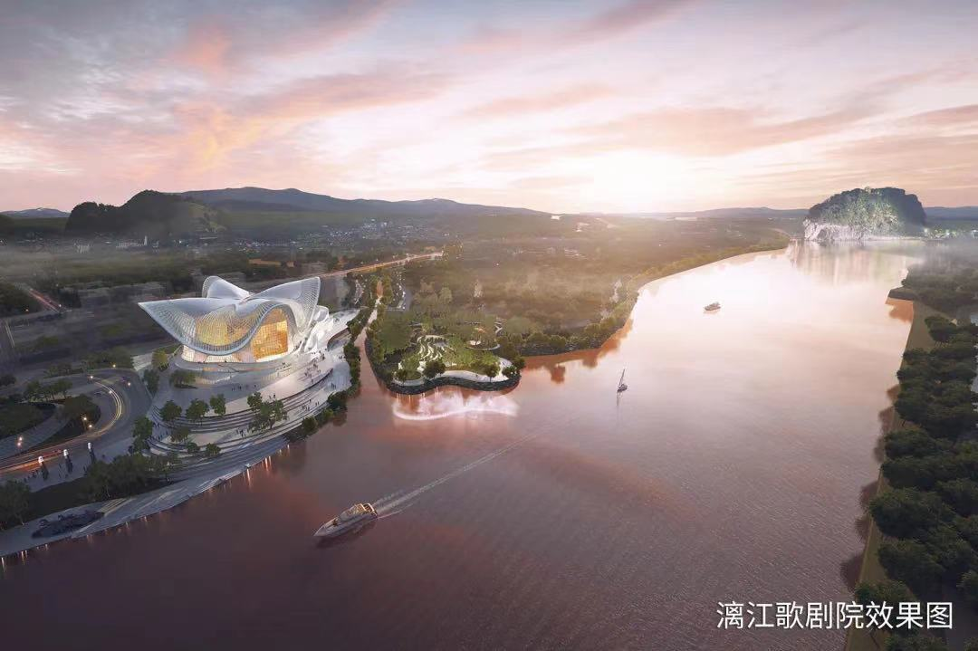 興進集團打造的建筑,融入自然與藝術,與桂林山水相得益彰。于漓江畔打造的漓江歌劇院,融合桂林地域文化精神,書寫"水澤丹桂,枝繁漓江"的詩意。
