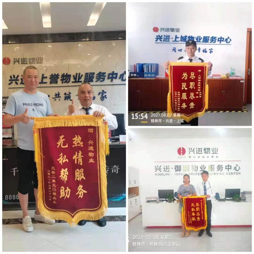 興進物業旗下在管27個項目,自治區優占比60%,桂林市優占比達90%,其中興進·漓江郡府金桂府及銀桂府、興進·上城、興進·中央尊館等11個小區榮獲"桂林市物業管理優秀住宅小區",興進·漓江郡府金桂府、興進·中央尊館、興進·上譽、興匯城等7個小區榮獲"廣西城市物業管理優秀住宅小區"。