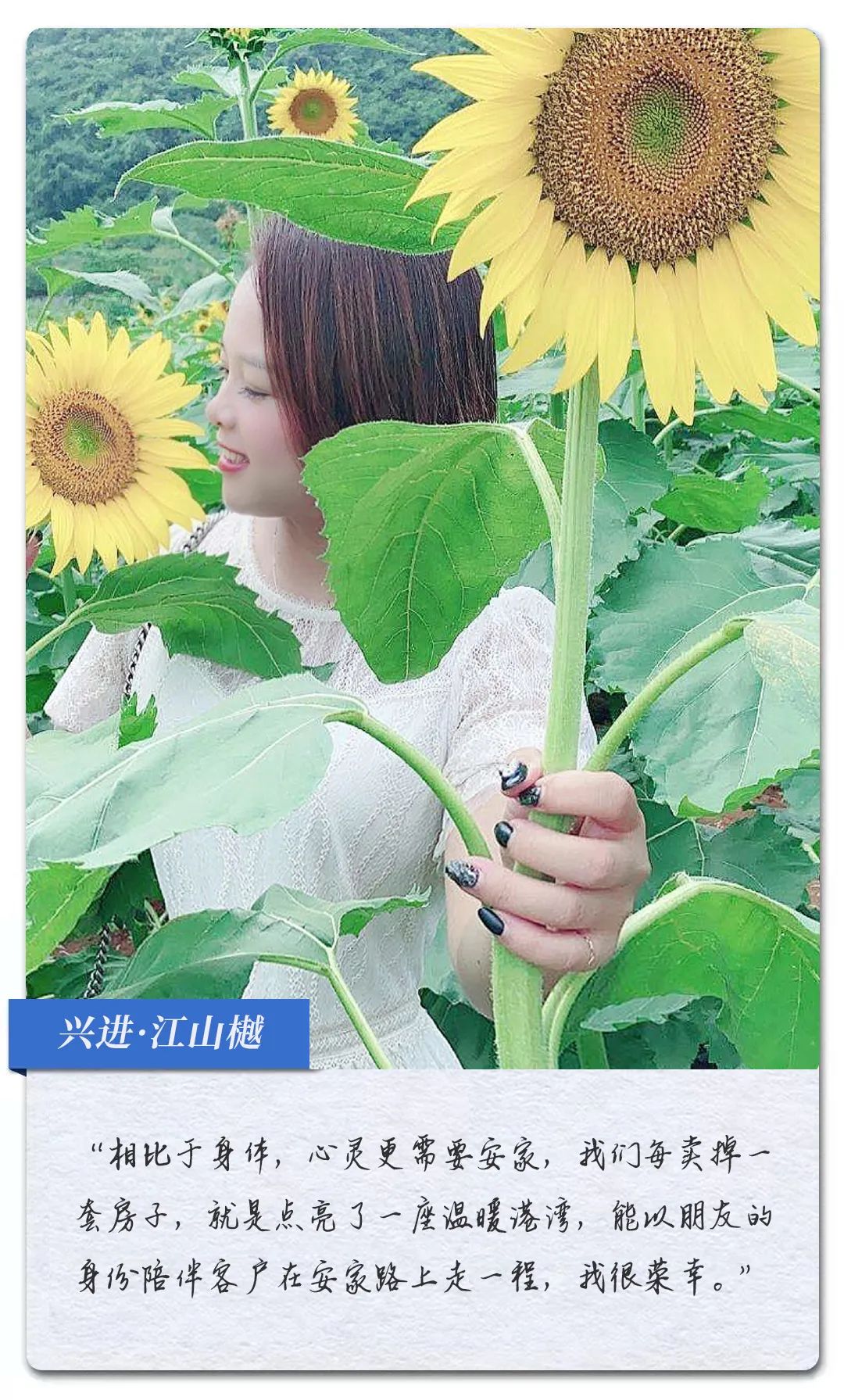 很多像李微微、張藍(lán)之、于澤坤一樣的安家顧問(wèn),在他們看來(lái),賣的是房子,肩負(fù)的卻是家,他們也正用自己的方式,努力成為客戶的理想生活規(guī)劃師,為還在尋覓幸福的人找到家。
