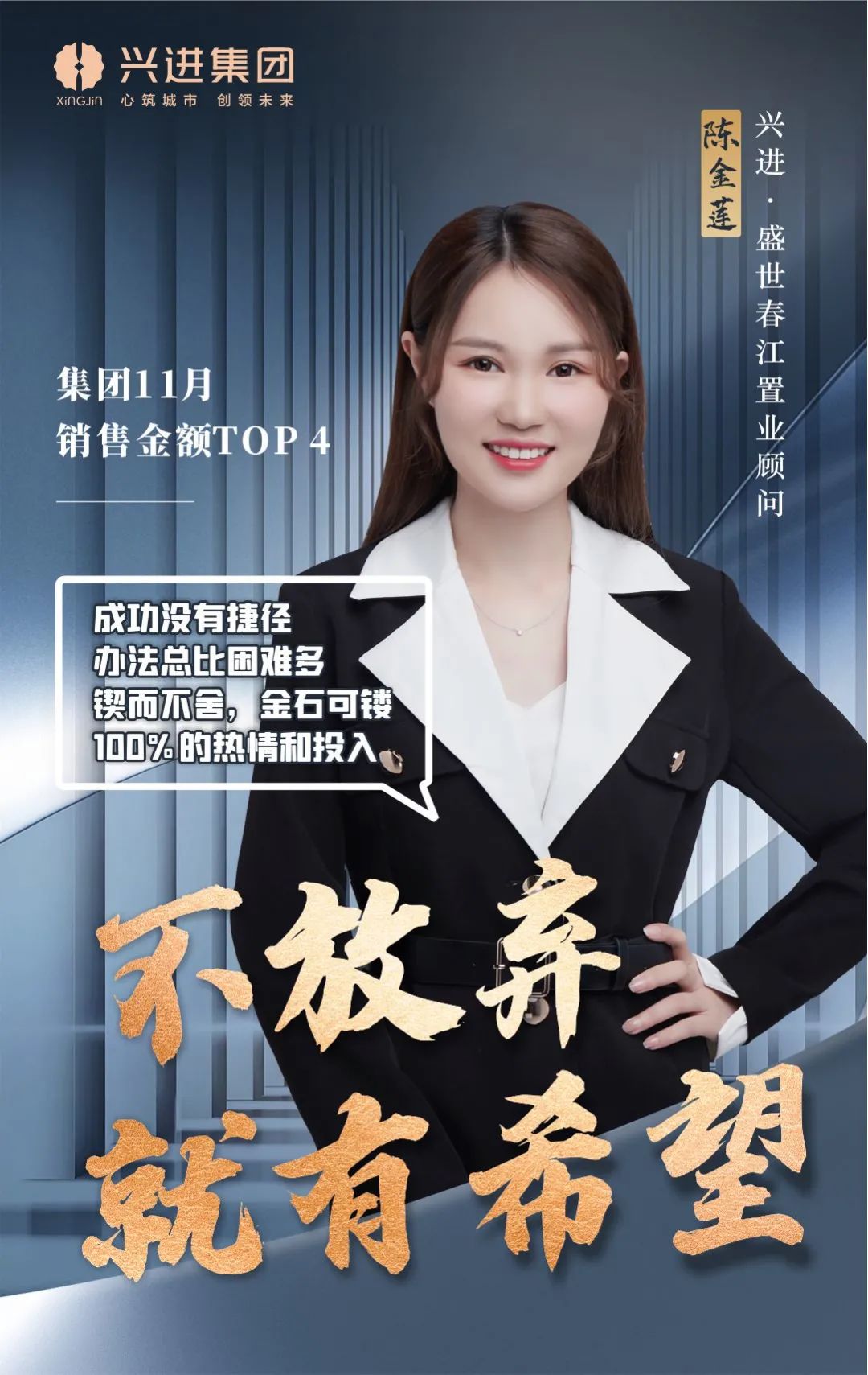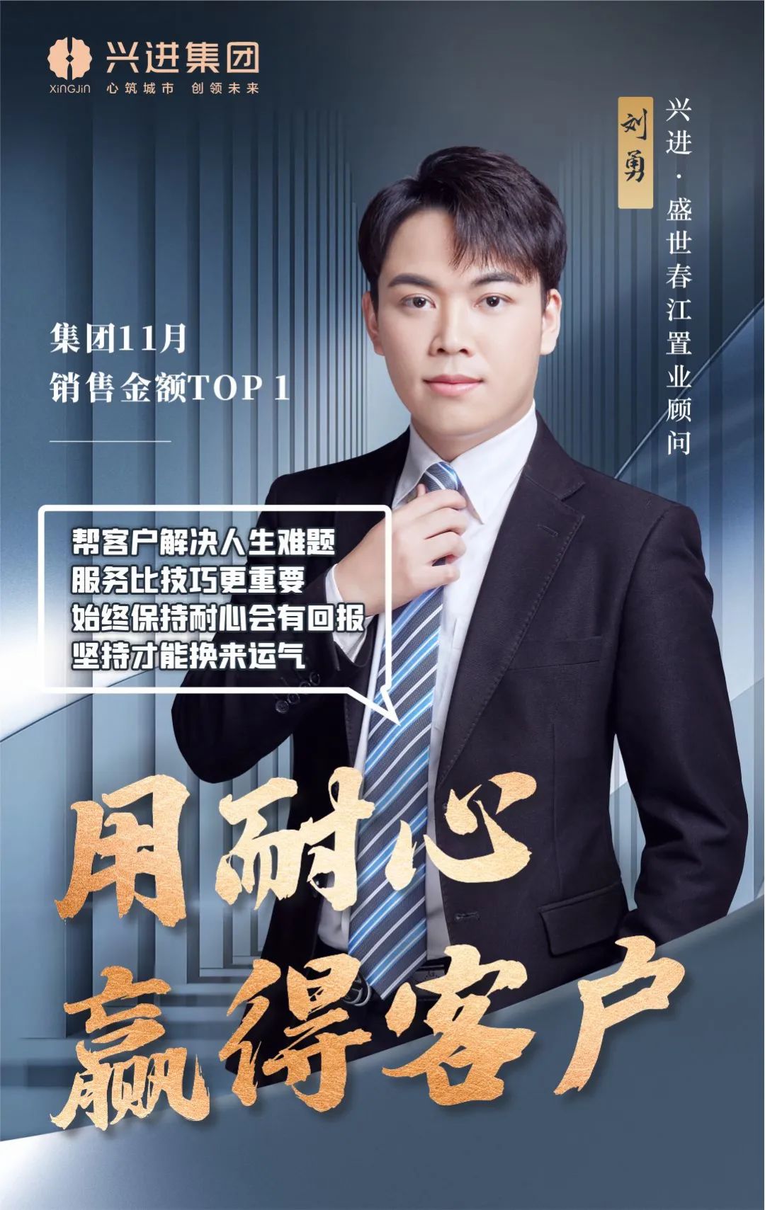 興進·盛世春江營銷團隊,11月獲得集團優秀團隊殊榮,集團銷售金額前5名均為團隊成員,他們用專業與溫情,成為客戶的美好生活規劃師。