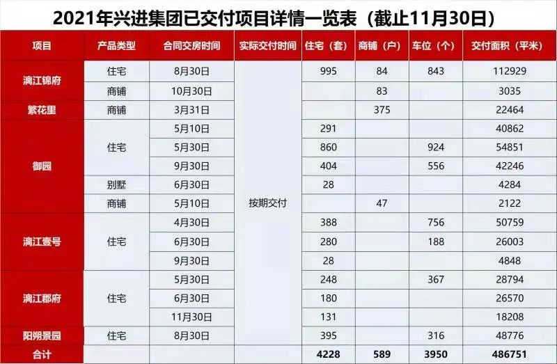截止2021年11月30日,旗下多個精品項目在今年陸續交付,興進以實力兌現承諾,贏得市場和業主的一致認可。