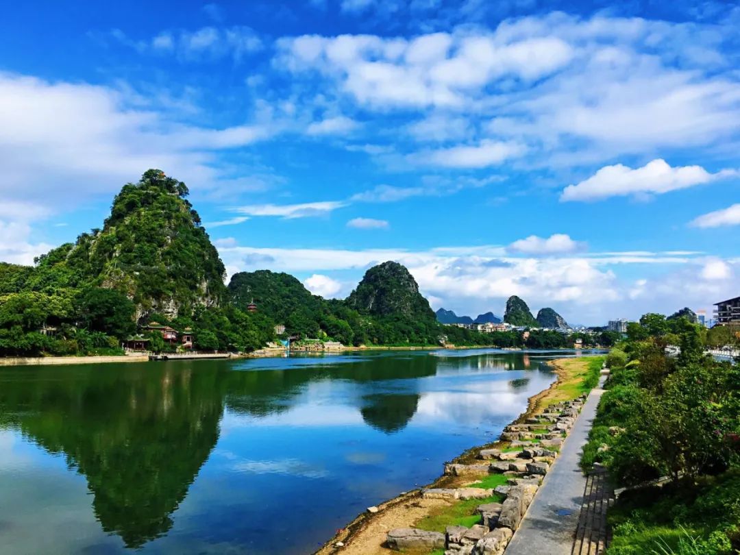 靖江王府貴脈之上,漓江與小東江匯合之處,玉帶環抱,青綠潛在,讓人不經感慨,《千里江山圖》不僅僅在畫中,也在漓江最美1公里之上。