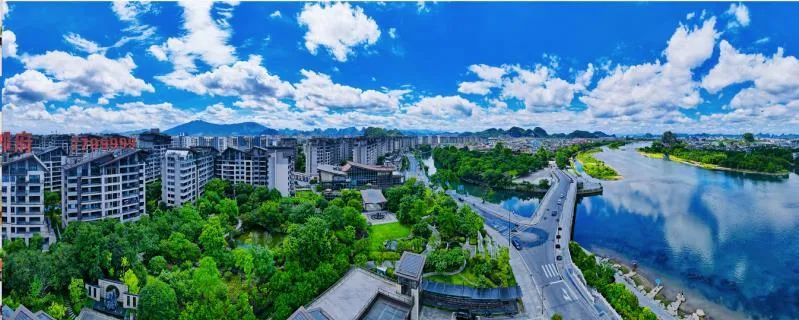 在這里,可以近觀疊彩山、木龍湖、伏波山,中觀虞山、老人山、獨秀峰等。遠眺象鼻山、七星巖、訾洲公園等......江山皆為景,所見皆入畫。