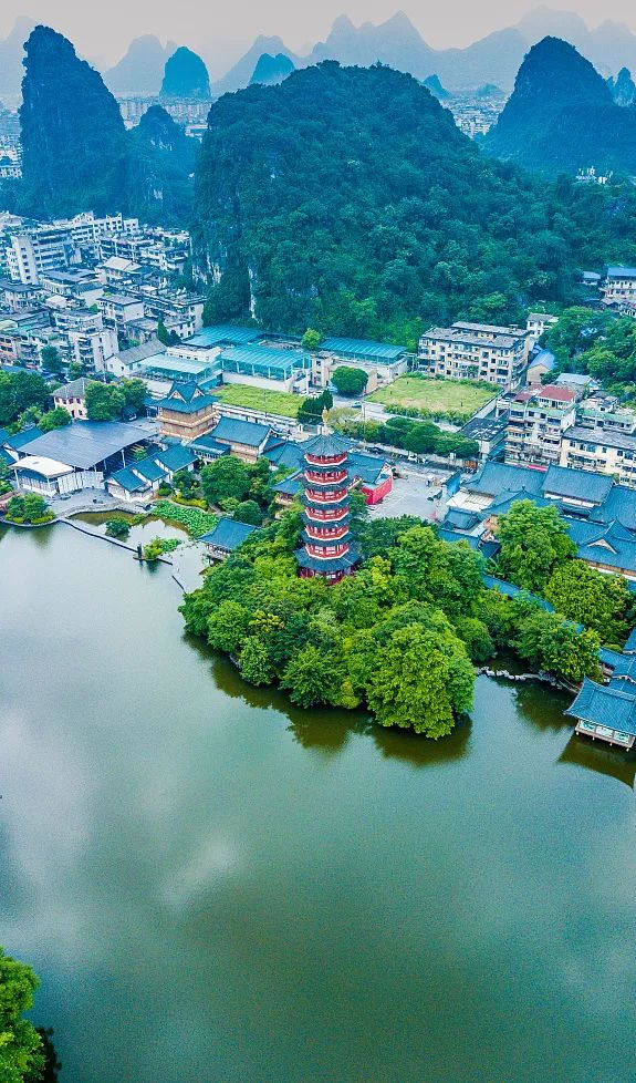 榕湖和杉湖原本是宋代桂林城的南護城河,于明代衍變為風光秀美的城內湖。榕湖北岸的"古南門",由郭沫若題匾,為宋代城墻遺址。而其實榕湖留下的,遠不僅僅是生命力遠去的建筑古跡,更有說不清的人文故事:"桂嶺環城如雁蕩,平地蒼玉忽嵯峨,李成不在郭熙死,奈此百嶂千峰何"——宋代大詩人,大書法家黃庭堅曾泊舟榕湖,寫下經典的《到桂林》,及此以降,宋末文壇領袖劉克莊,在紀念黃庭堅的"榕溪閣"處,緬懷先賢,留下"榕聲竹影一溪風,遷客曾來系短篷。我與竹君俱晚出,兩榕猶及識涪翁"的經典詩篇。