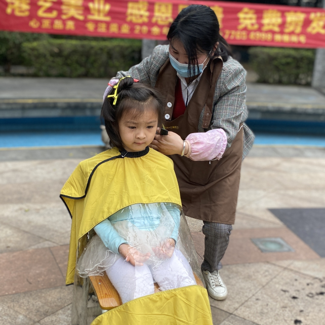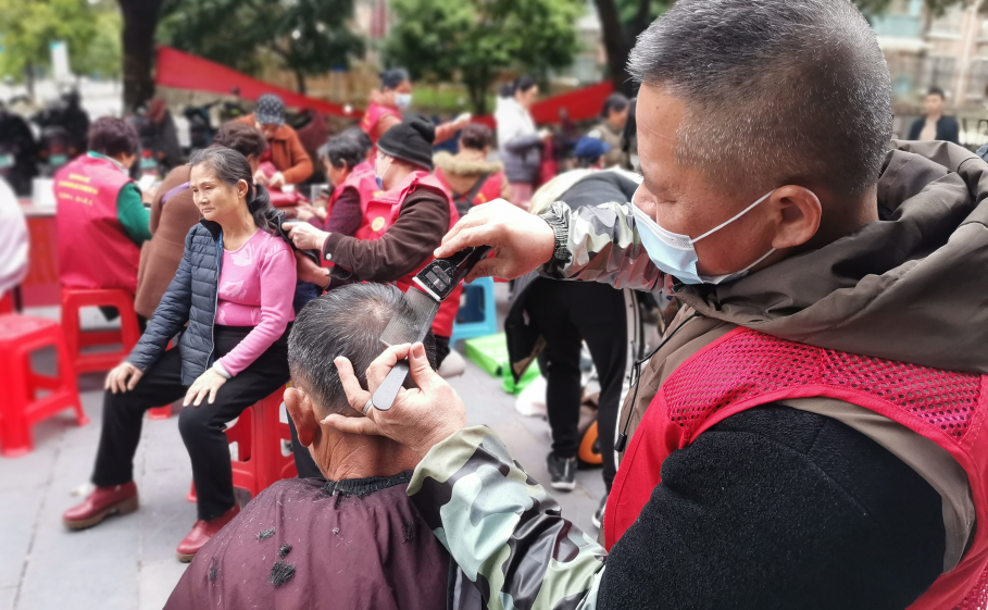 業主們早早的就在理發服務的臺前排起了長隊,不少都是沖著興進Tony的手藝來的。對于老人和小孩來說,這種便捷的理發方式,為他們省去很多麻煩。
