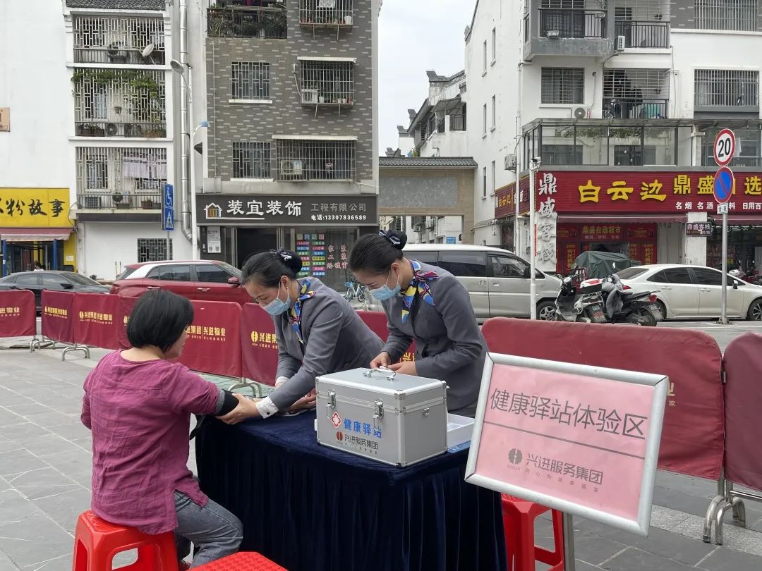 除了慣例的便民活動外,興進服務集團的特色增值服務——健康驛站康養服務,在漓江郡府和漓江壹號也是好評不斷。契合國家"康養政策",讓簡單的"老有所養"升級成"老有頤養"。定制個性化照護方案,提供檢測血壓、血氧、血糖、尿酸等十大服務,在咫尺之距就能享受到專業便捷的服務。