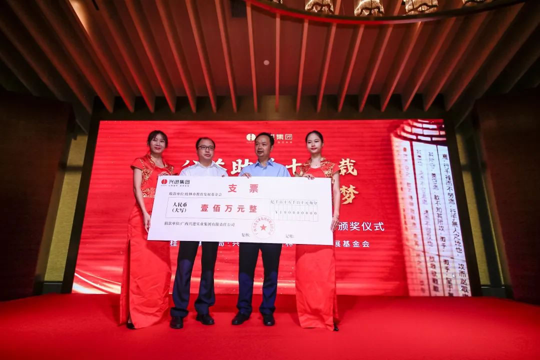 連續十年堅持資助"三元午餐·愛心工程"活動,為全州縣東山鄉白嶺小學捐款捐物;2019年,向桂林市教育發展基金會捐贈100萬元,用于支持桂林教育事業發展;2020年、2021年,向桂林中學捐贈"興進·桂林中學優秀獎學金",為學子的求學之路提供幫助。